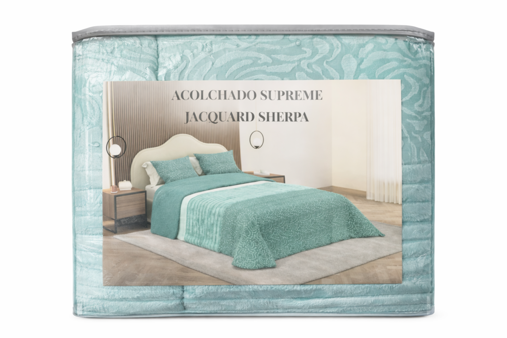 Acolchado Supreme Jacquard Sherpa modelo Sofía en color verde agua.