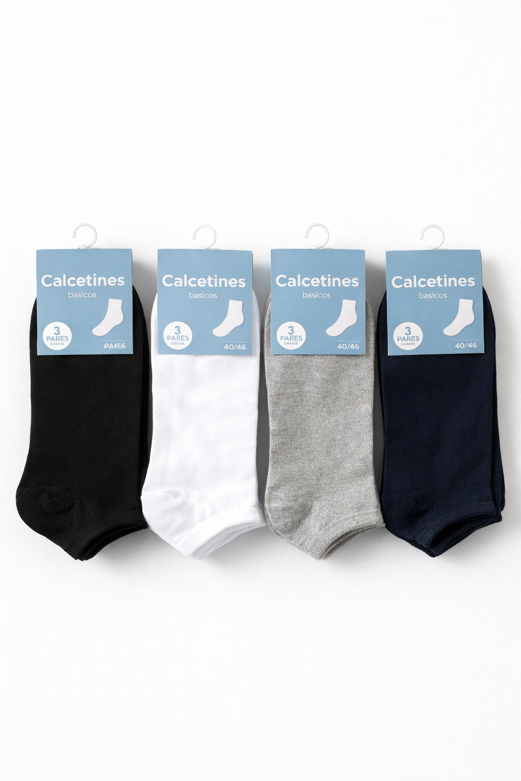 Pack de calcetines básicos surtidos pensado para el día a día. Su diseño sencillo y funcional los convierte en una opción cómoda para uso diario, tanto en casa como en el trabajo, el colegio o actividades cotidianas.